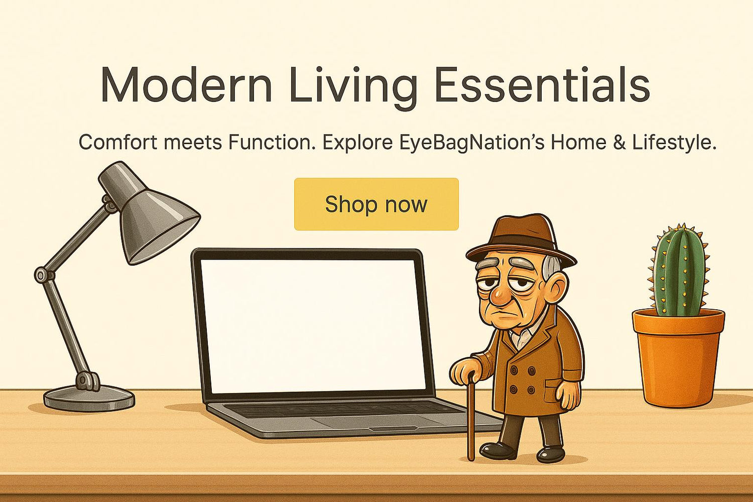 "Take it from EyeBag Man, good homes don't need fancy slogans - just solid chairs, steady lamps, and a humidifier that doesn't sound like a jet engine."